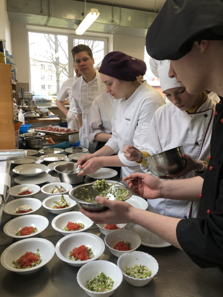 Latvijas Dabas fonds kopā ar biedrību “Jauno pavāru kustība” iepazīstināja Rīgas Tūrisma un Radošo industriju tehnikuma Preiļu struktūrvienības ēdināšanas nozares audzēkņus ar dabisko pļavu produktiem un to daudzveidīgajām izmantošanas iespējām.