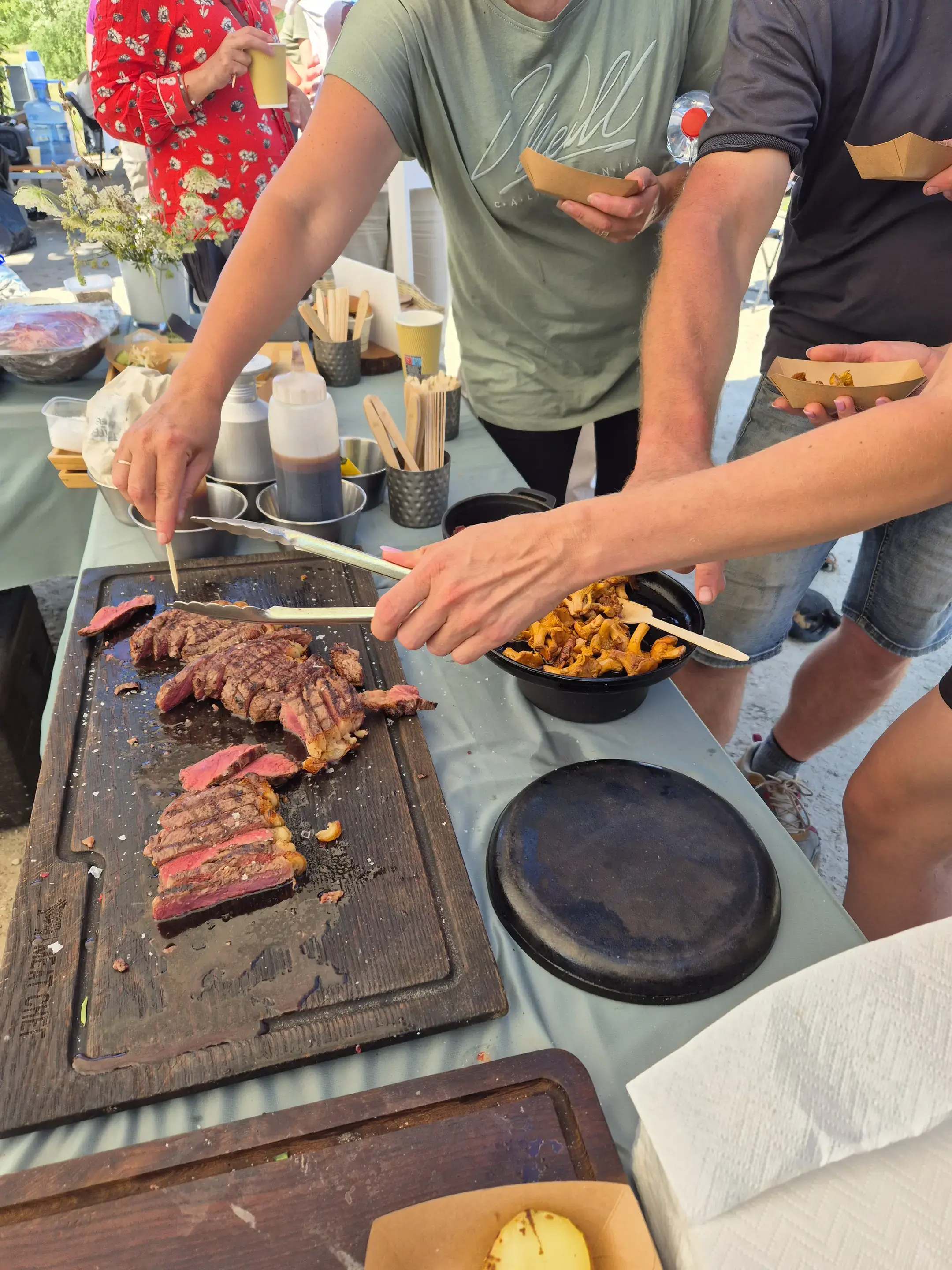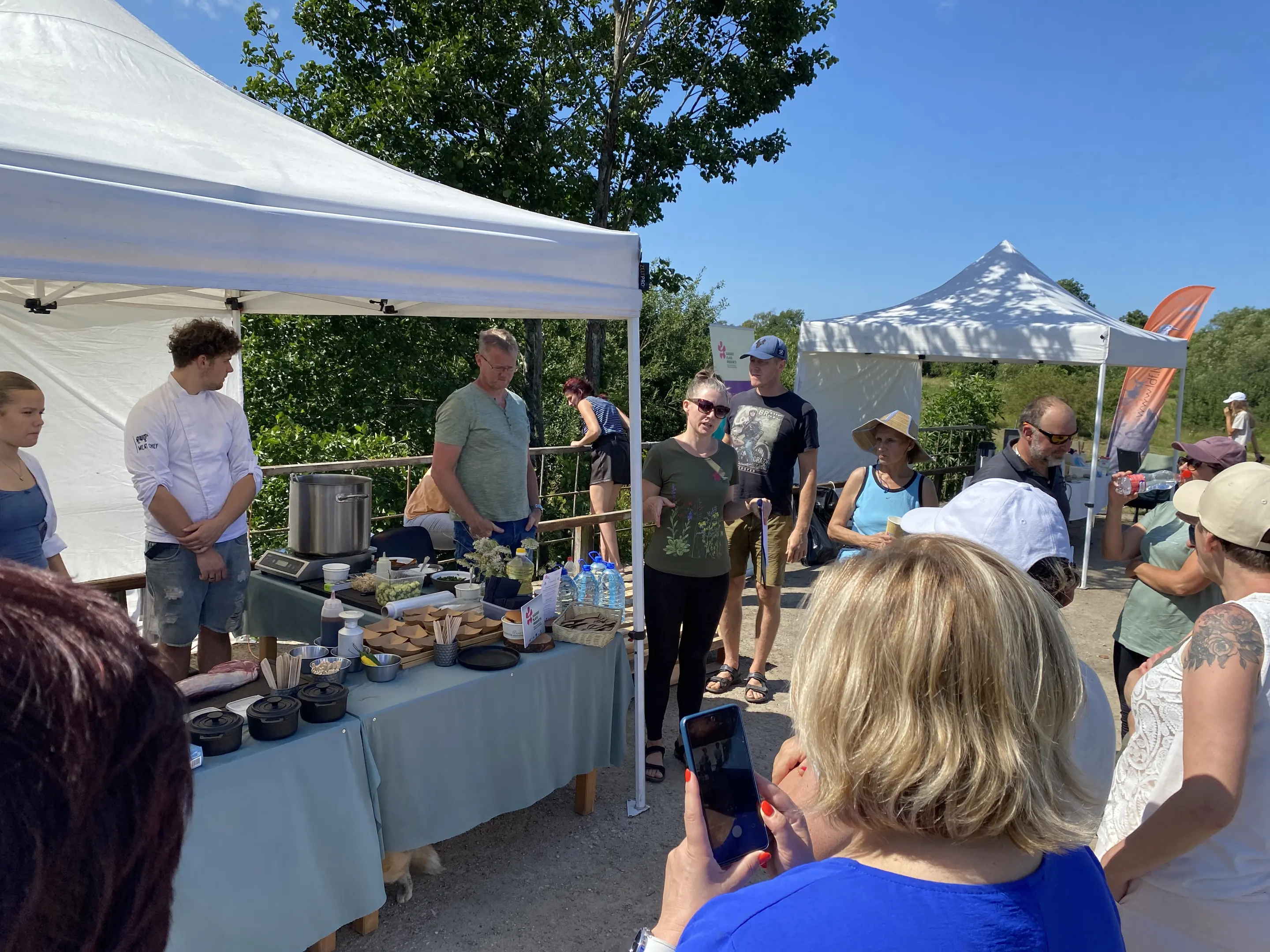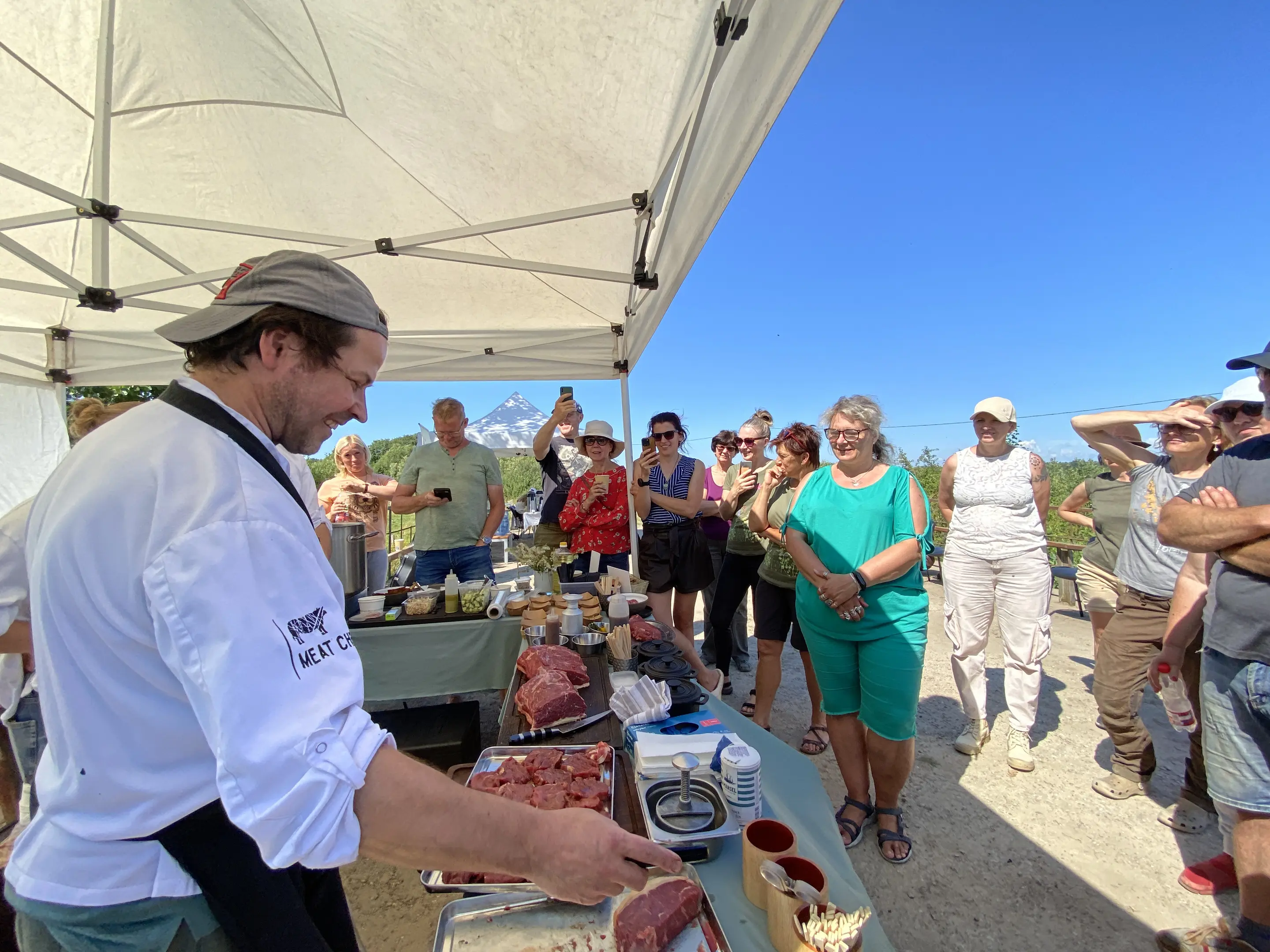 Devāmies ekskursijā – izzinošā pārgājienā Latvijas Dabas fonda pļavu ekspertu Baibas Strazdiņas un Līgas Gavares, un entomologa Voldemāra Spuņģa pavadībā. Atgriežoties pēc apmēram 6 km garā pārgājiena visiem bija lieliska apetīte pusdienām, kam sekoja degustācijas. “Meat Chef” šefpavāra Kaspara Jansona vadībā iepazināmies ar dabiskajās pļavās audzētu liellopu gaļas gatavošanas un garšas niansēm un degustējām izcili garšīgus steiku, pikaņju un fileju. Liellopu gaļu mums laipni sagādāja pļavu saimnieki SIA “Rukši”.