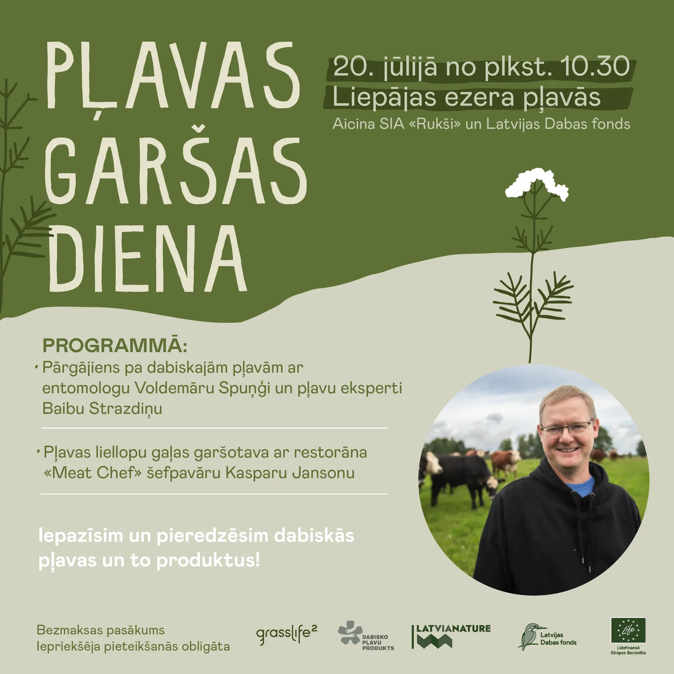 Latvijas Dabas fonds un SIA “Rukši” 20. jūlijā aicināja uz Pļavas garšas dienu Liepājas ezera pļavās. Šajā dienā kopā ar pļavu saimnieku un dabas ekspertiem varēja iepazīties ar piejūras zālājiem un to dabas vērtībām, kā arī uzzināt, kā noris saimniekošana šāda veida pļavās. Pasākuma dalībniekiem arī tika piedāvāta Pļavas gaļas garšotava, ko vadīja restorāna “Meat Chef” šefpavārs Kaspars Jansons, un iespēja uzzināt par dabisko pļavu produktiem.