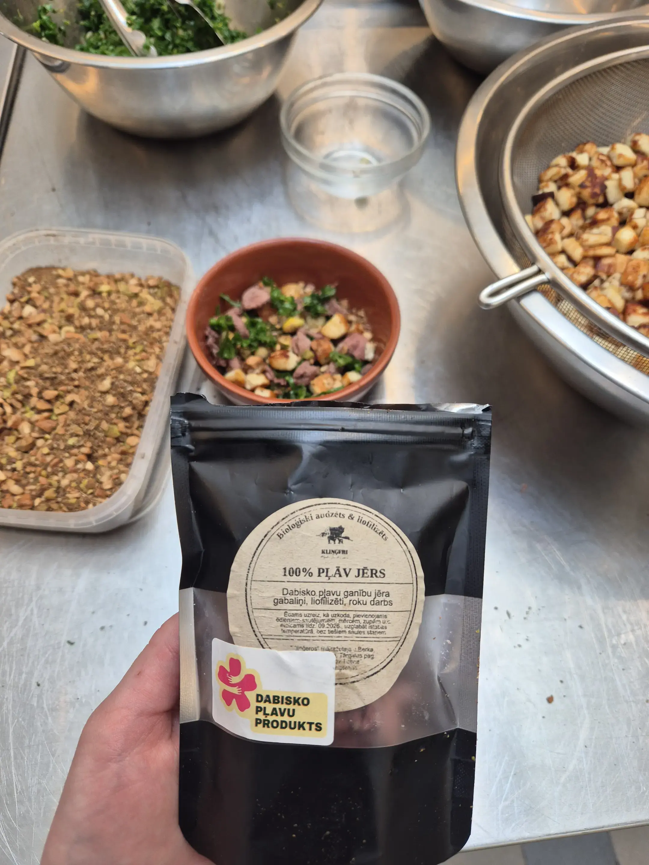 Ēdienu gatavošanā tika izmantoti dabisko pļavu produkti no Kurzemes saimniecībām: dabiskajās pļavās audzētu liellopu gaļa no SIA “Rukši”, jēra gaļas produkti no saimniecības “Kliņģeri” un pļavas piena produkti no ZS “Bišudārzi”. Šie ražotāji apsaimnieko dabiskās pļavas, un viņu ražotie produkti tiek marķēti ar zīmi “Dabisko pļavu produkts”.