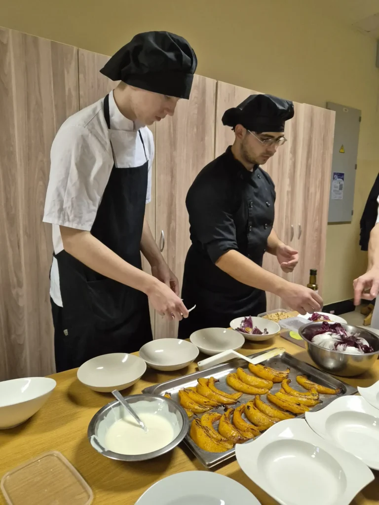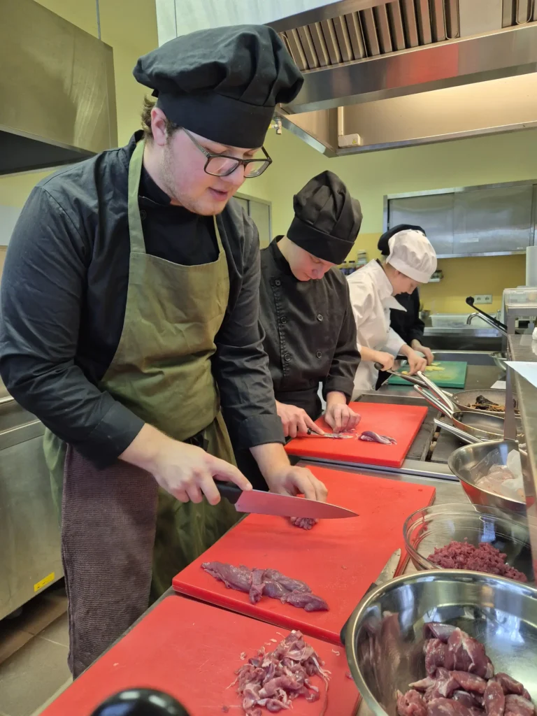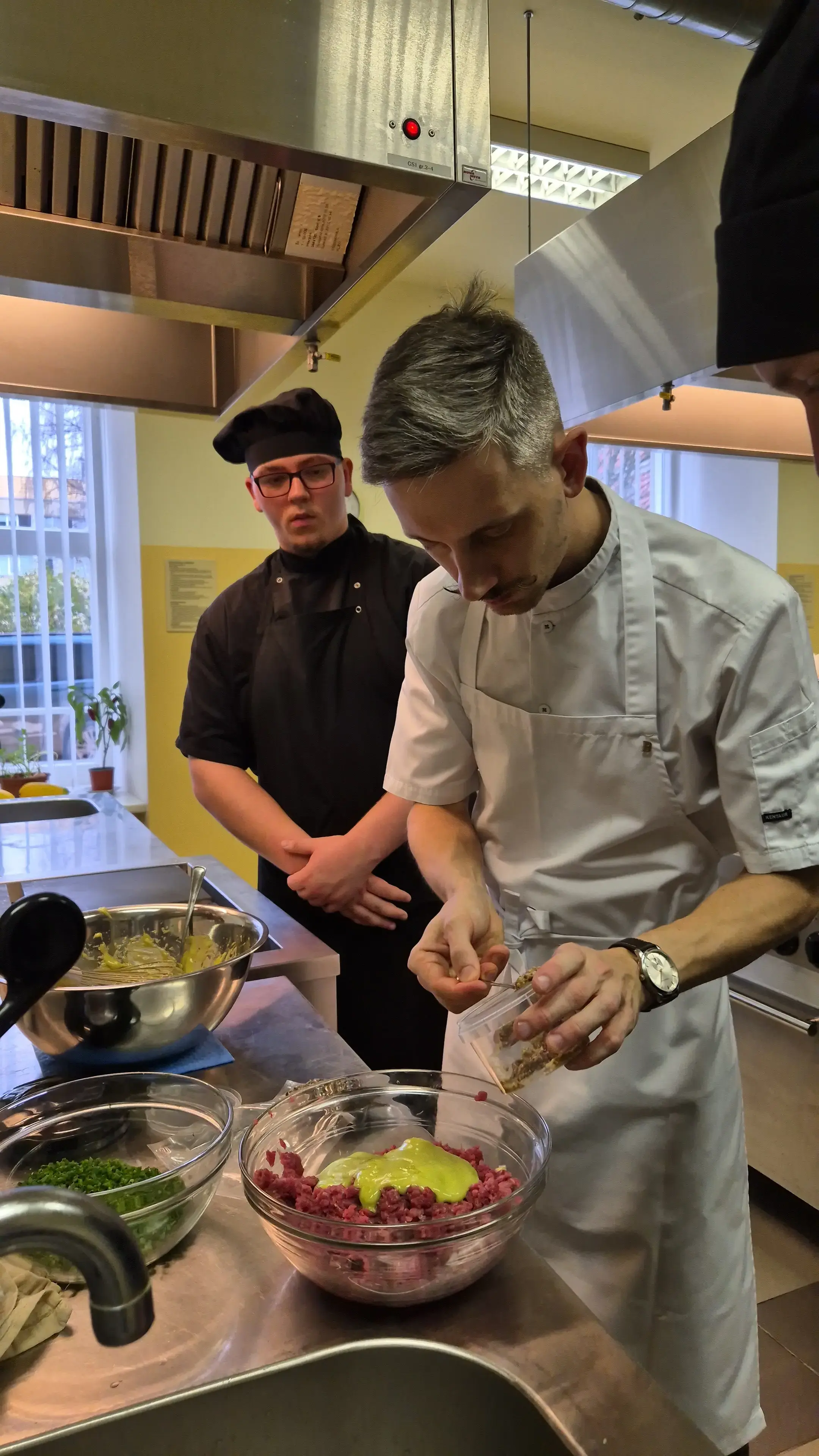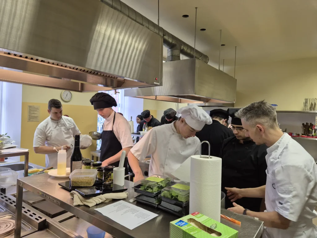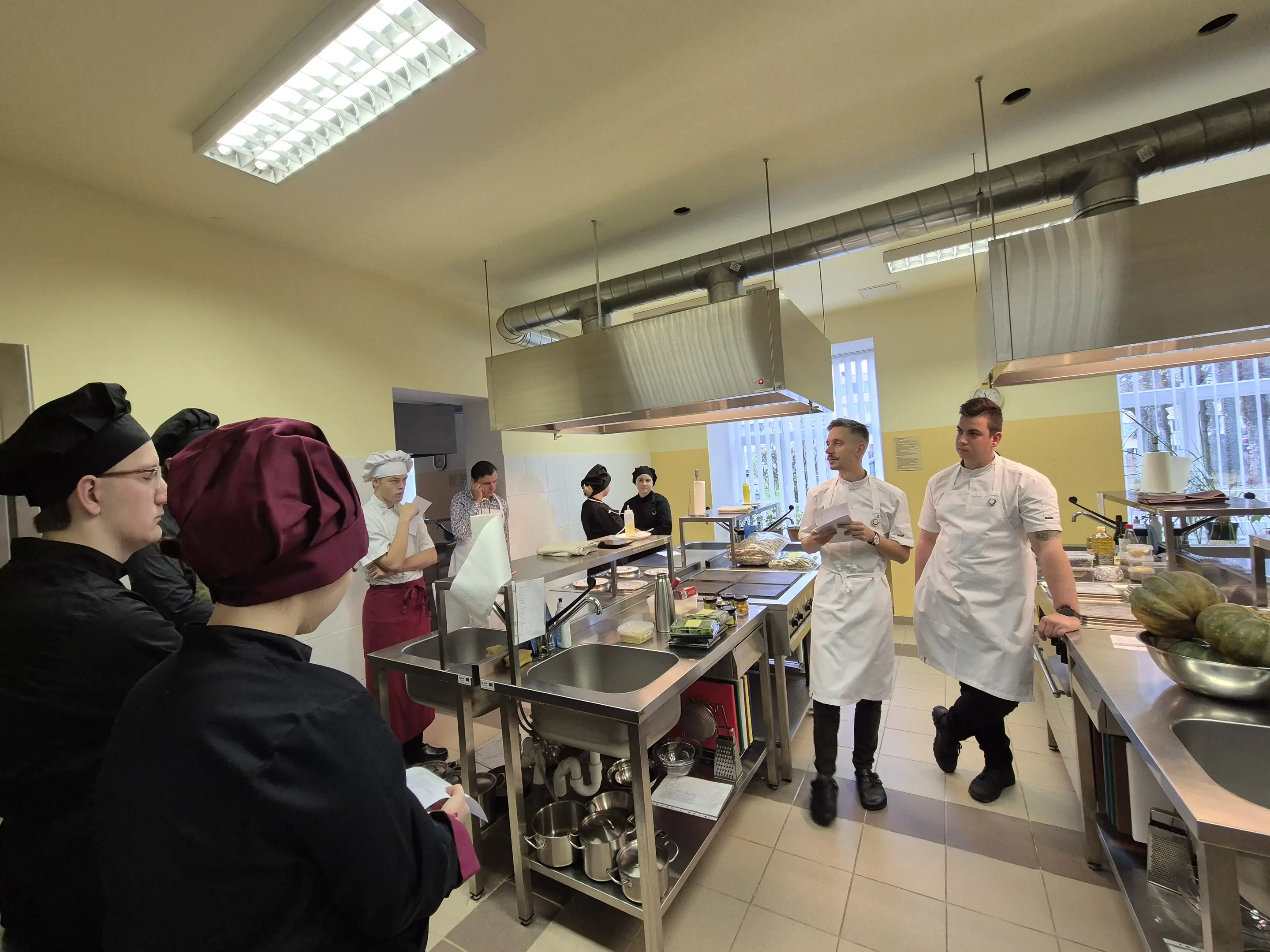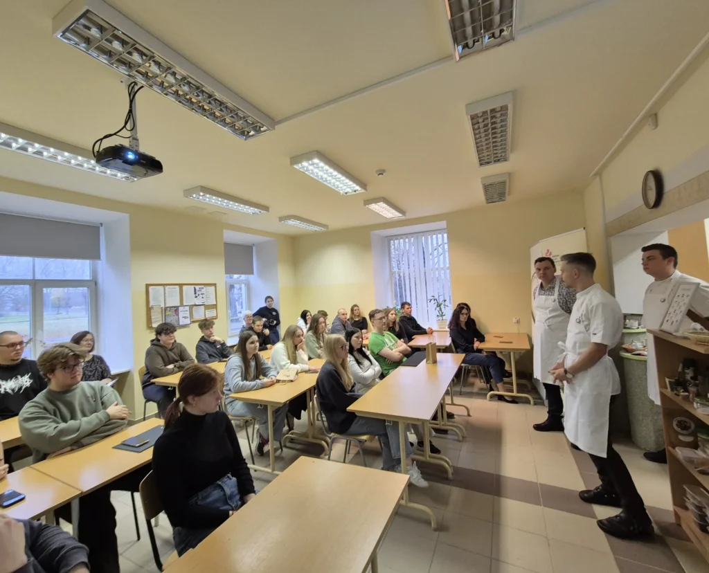Sekoja praktiskā daļa – meistarklase, ko audzēkņiem vadīja pieredzējuši pavāri – Artūrs Trinkuns no restorāna “Barents” un Markuss Žamoidiks no restorāna “B7”.