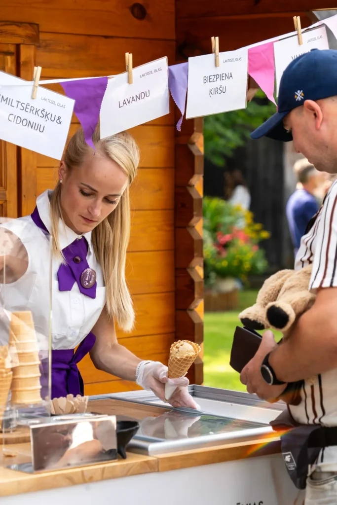 Dvietes saldējums ir sezonāls produkts. Par saldējuma sezonas atklāšanu un slēgšanu lūdzu uzziniet sociālajos tīklos FB & IG: Dvietes īstais lauku saldējums Pirms apmeklēt Saldējuma namiņu, vēlams sazināties: tel. 20033794. Produkcija nopērkama uz vietas saimniecībā, gadatirgos, pilsētu svētkos, dažādos pasākumos. Pēc pasūtījuma piegādā arī uz Rīgas apkaimi.